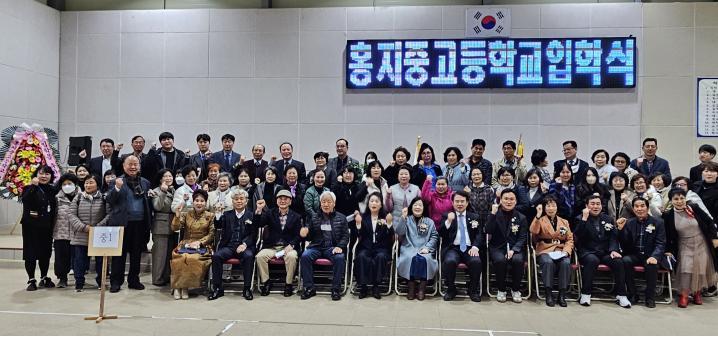 ▲홍지중∙고등학교 26학년도 신입생 및 내∙외빈 단체기념촬영