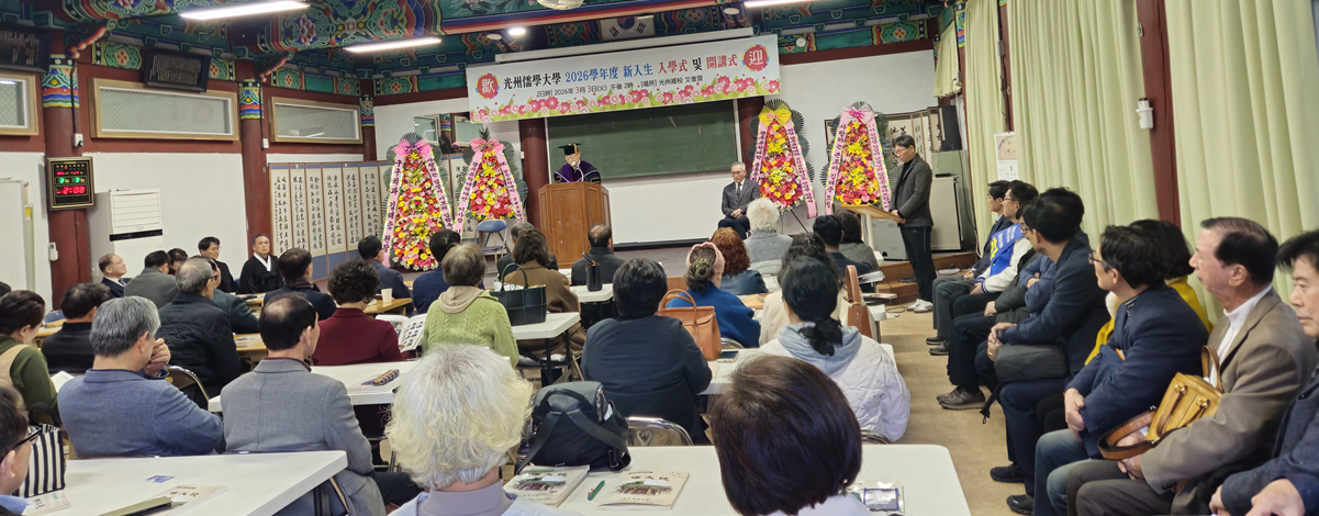 기호석 광주향교 전교(광주유학대학재단 이사장)는 축사에서 “광주유학대학이 지역의 인문정신을 이끄는 배움터로 더욱 발전하길 기대한다”며 신입생들의 입학을 축하하고 학업 정진을 격려했다.