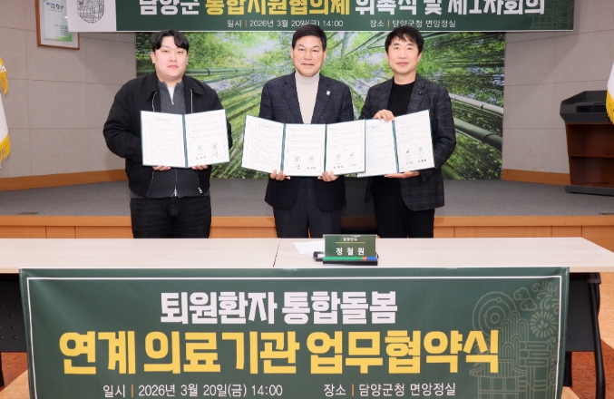 [코리아피플뉴스] 담양군은 20일 군청 면앙정실에서 관내 2개 의료기관과 ‘퇴원환자 통합돌봄 연계 의료기관 업무협약(MOU)’을 체결했다.