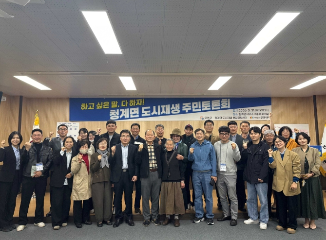[코리아피플뉴스] 전남 무안군은 청계면 도시재생 주민토론회를 주민, 학생, 관계 전문가 등 50여 명이 참석한 가운데 지난 3월 31일 청계면사무소 2층 대회의실에서 개최했다고 밝혔다.